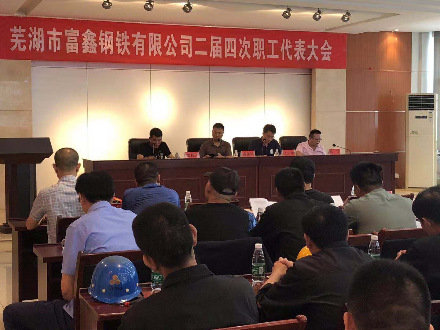 2019年8月6日上午9時蕪湖市富鑫鋼鐵有限公司第二屆第四次職工代表大會在雄壯的國歌聲...