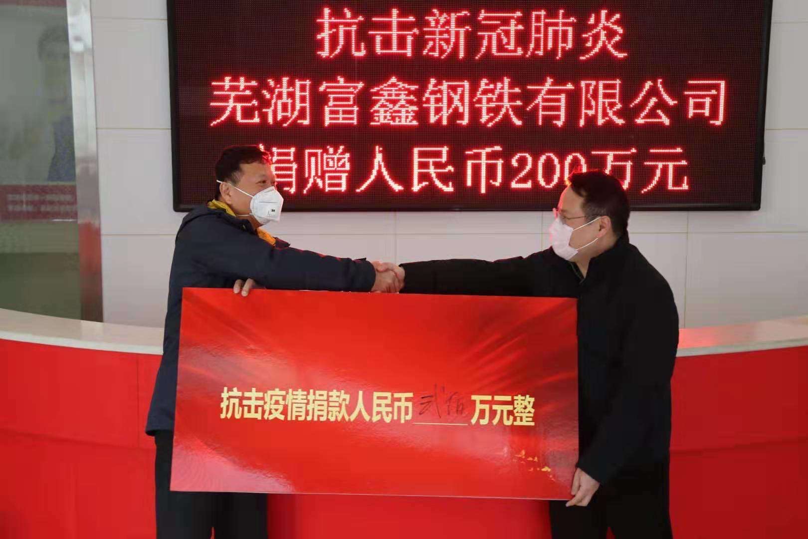 眾志成城 抗擊疫情!【蕪湖富鑫鋼鐵有限公司捐款200萬(wàn)人民幣 支持繁昌人民抗擊新冠病毒疫情】