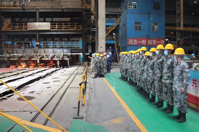 5月20日上午,陽光明媚,在這個(gè)愛意滿滿的日子里,“最可愛的人”駐繁部隊(duì)官兵及近50名新入伍戰(zhàn)士一行走進(jìn)富鑫公司觀摩煉鐵、煉鋼生產(chǎn)流程?;顒?dòng)中,全體官兵軍容嚴(yán)整,步伐一致,體現(xiàn)了新時(shí)代的革命軍人斗志昂揚(yáng)的精神面貌?;顒?dòng)結(jié)束后,該部隊(duì)政委表示,此次觀摩活動(dòng),十分有意義,感受深刻,富鑫鋼鐵的一線職工們給新入伍的同志上了一堂生動(dòng)形象的國防教育課。通過現(xiàn)場觀看煉鐵、煉鋼的生產(chǎn)流程,教育全體官兵,只有在革命的艱難困苦中戰(zhàn)勝敵人,在生活的巨大壓力中戰(zhàn)勝自己,只有把自己的追求和祖國、人民的利益聯(lián)系在一起的時(shí)候,才會(huì)創(chuàng)造奇跡,才會(huì)成長成為鋼鐵戰(zhàn)士,牢固樹立為革命獻(xiàn)身,鋼鐵般的意志和頑強(qiáng)奮斗的品質(zhì)。
